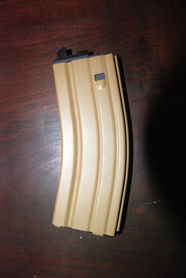 Il caricatore monofilare da 30 colpi funziona bene, senza inceppamenti di sorta, scarica tutta la fila di pallini in una raffica sola. Cercate di non farlo mai cadere perchè come per tutti i gbb è abbastanza delicato.