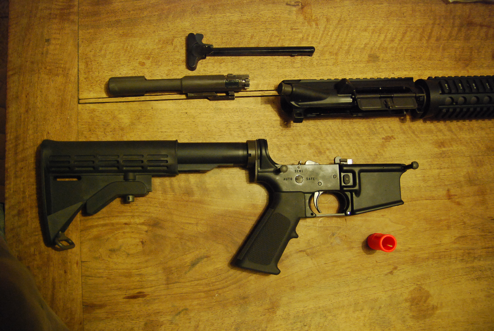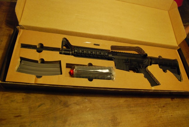 Questo è lo smontato del fucile, si vedono anche grip e il calcio, che sono dell’m4 vero!