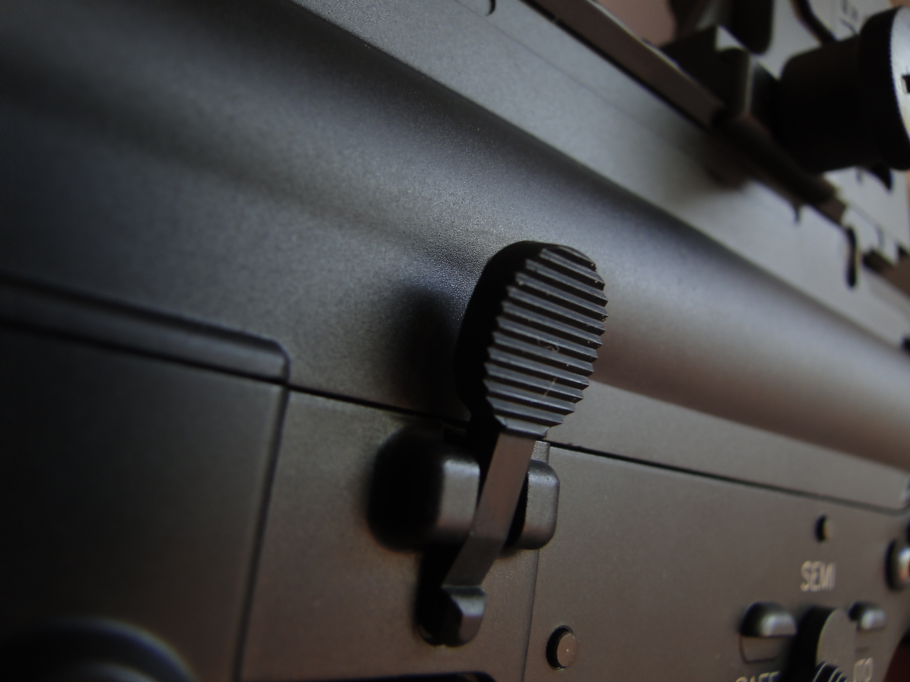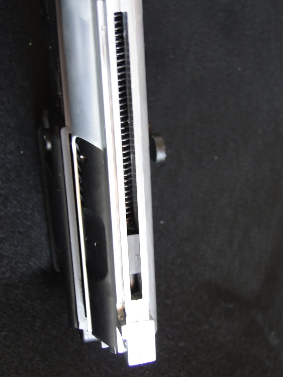 La carica del bolt avviene attraverso la maniglia che si innesta in un dentino posto dul dorso superiore del gear box