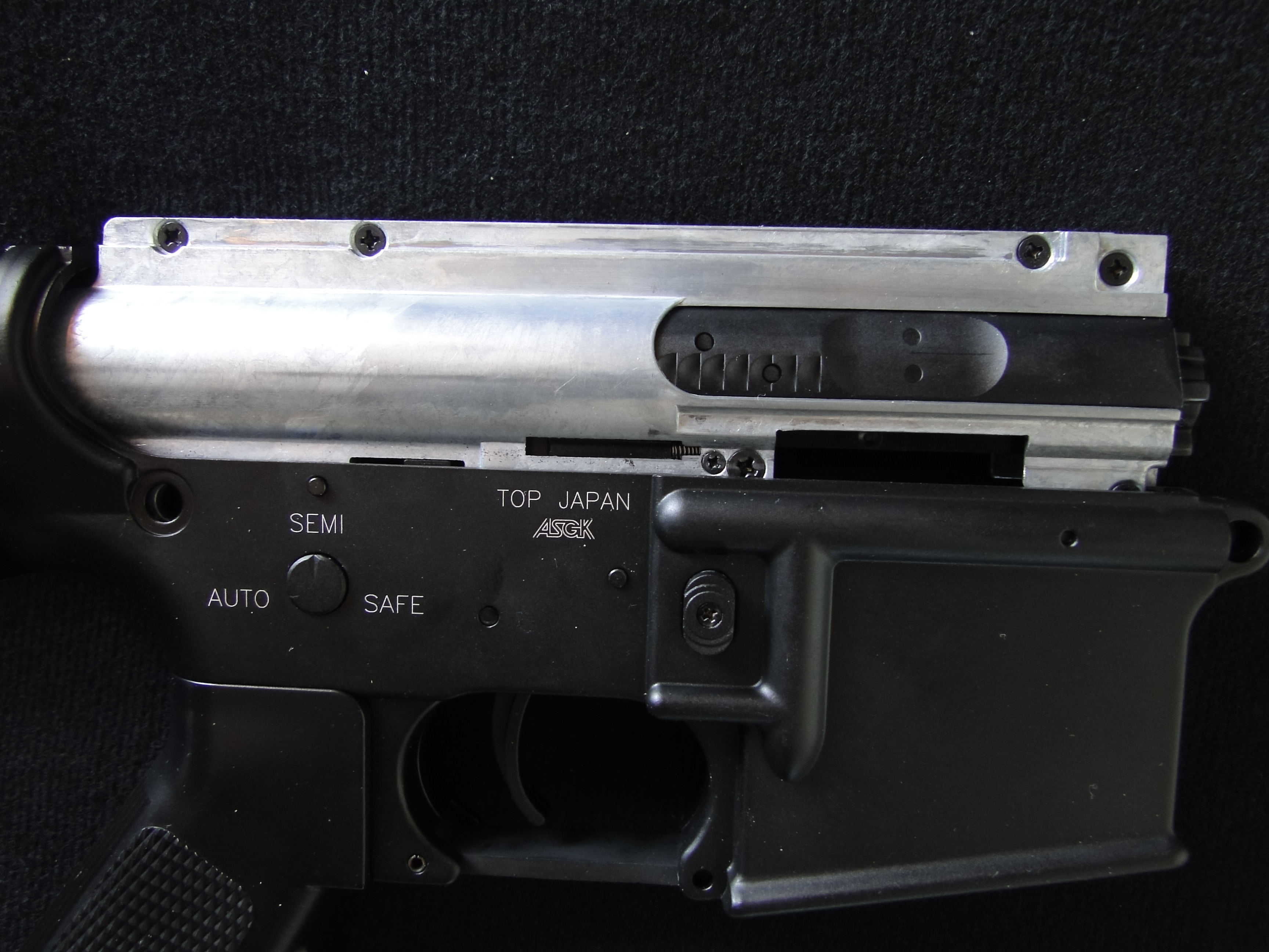 al suo interno il fucile si mostra di un bel nero brunito in tutte le sue parti senza troppi salti di colore tra i materiali.