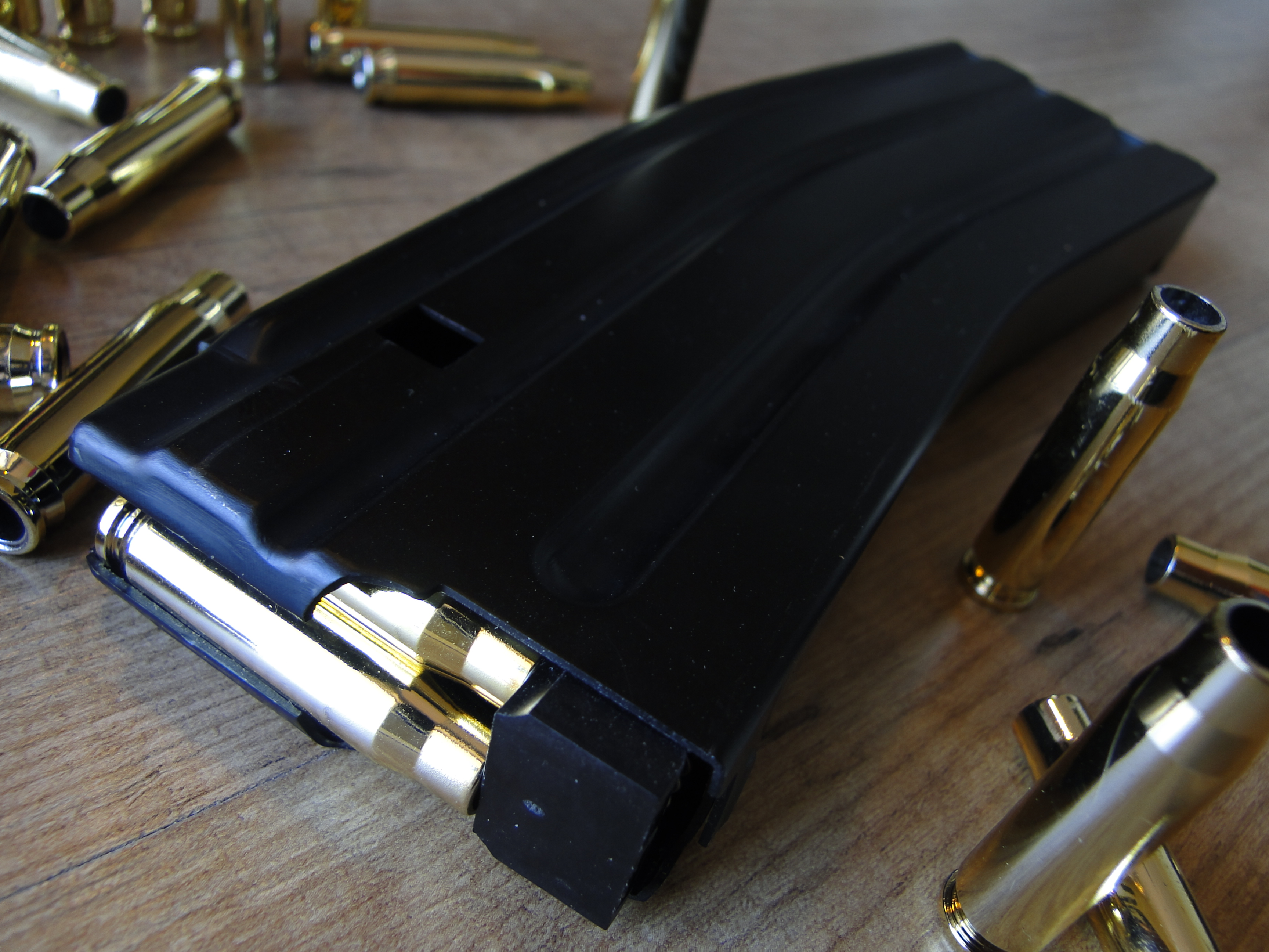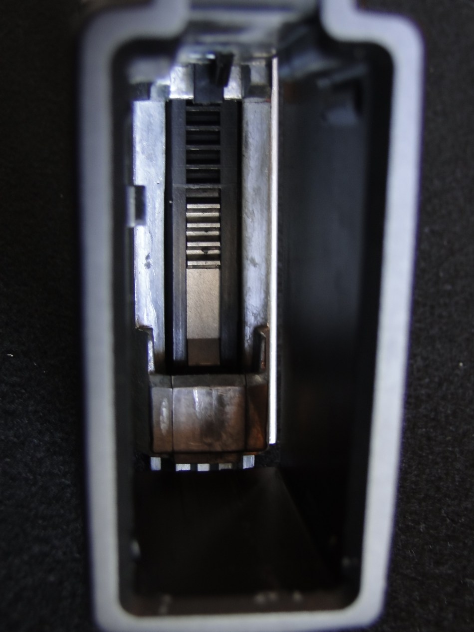 il caricatore è interamente in metallo a parte lo “spingi bossoli” interno in plastica.