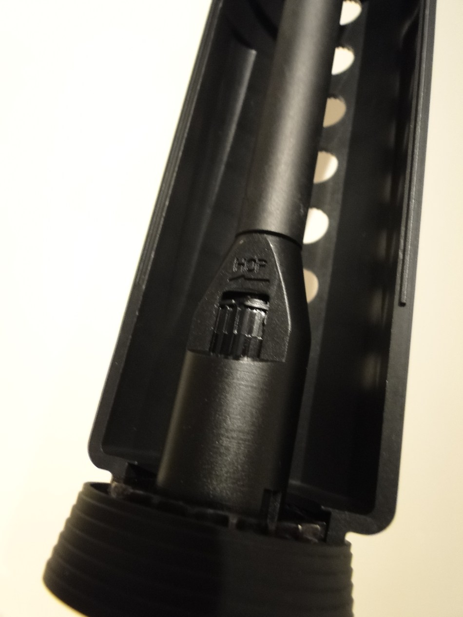 l’hop up si regola rimuovendo il guscio inferiore della canna.