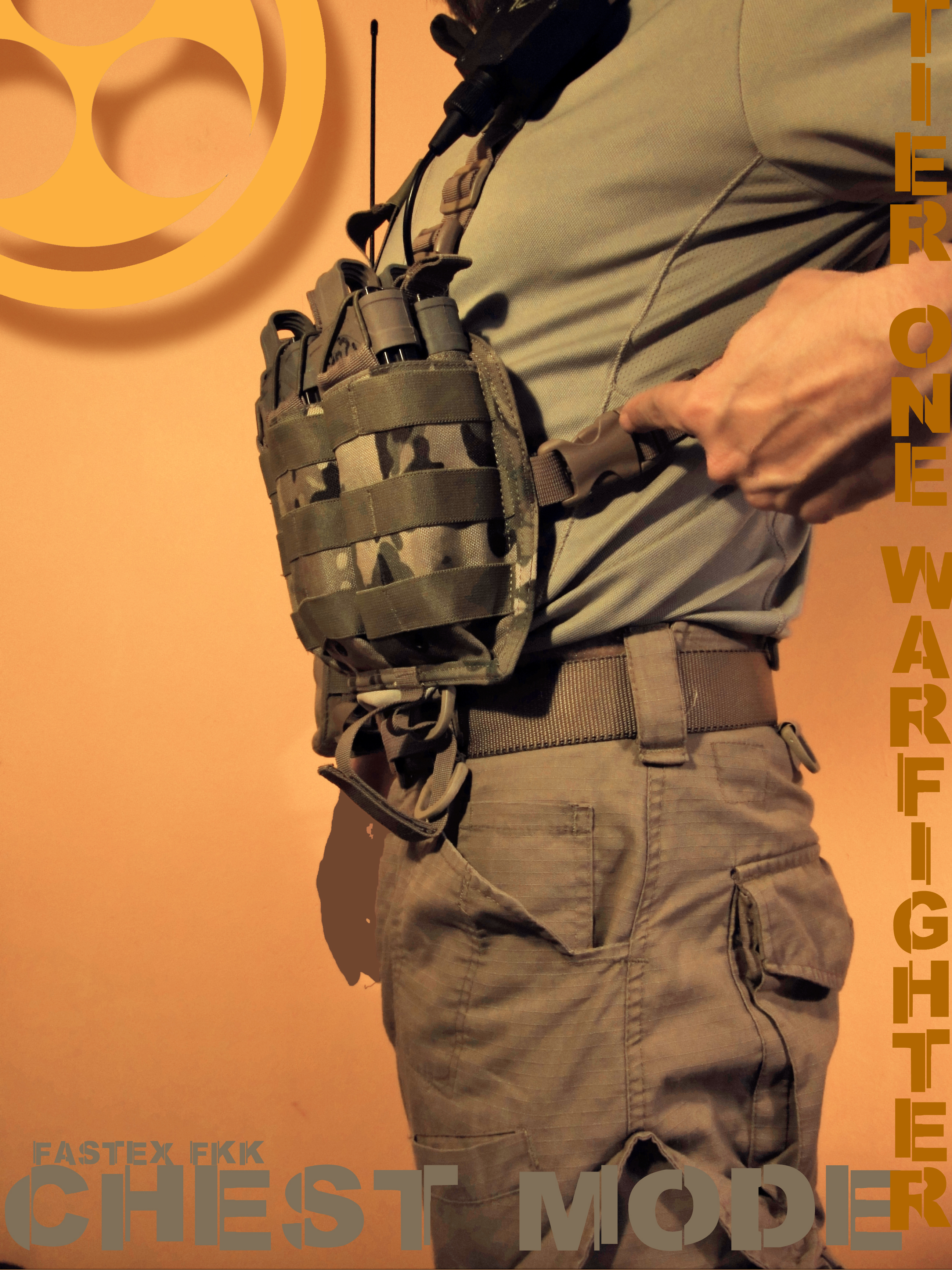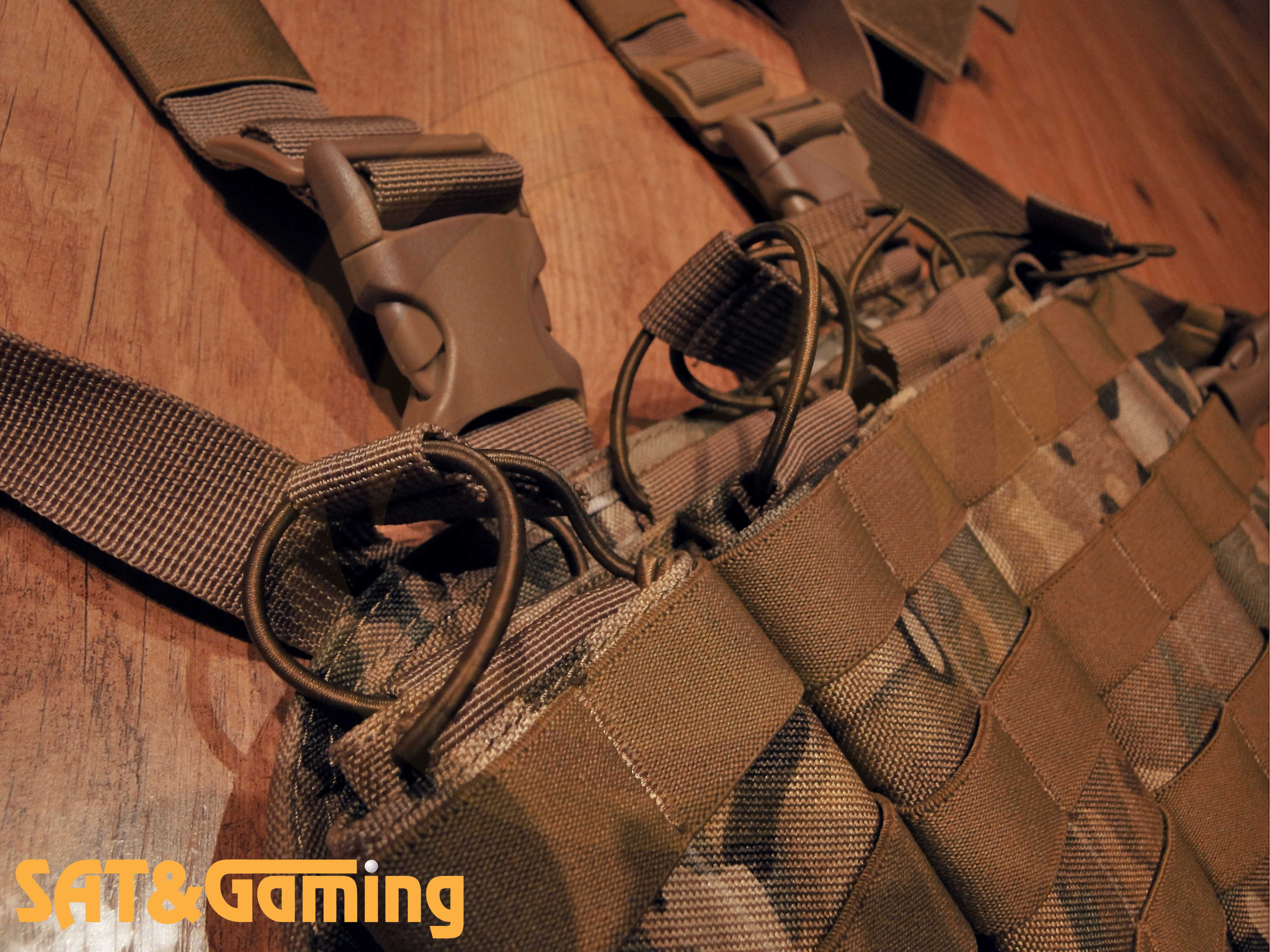 - Chest rig applicabile al vest tramite Fastex YKK e utilizzabile separatamente tramite gli appositi spallacci dedicati.Ha quattro tasche interne doppie regolabili in profondità idonee ad ospitare un totale di 8 caricari M4 o 8 Caricatori AK e/o radio.Sul retro del chest è disponibile una tasca porta documenti. Sono presenti inoltre 4 fori di drenaggio.