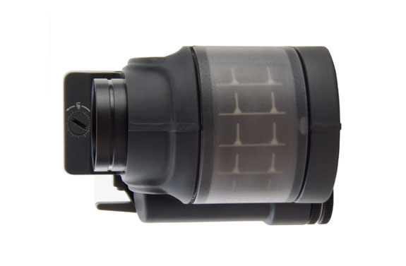 La lente anteriore inclinata è solarizzata e presenta delle coloristiche miste dal rosso al giallo a seconda della luce con predominanza al rosso. il suo riflesso al sole è indubbiamente alto e può dare origine a problemi di avvistamento anche a molta distanza per questo motivo la replica arriva dotata di un Flash Hider apposito che toglie assolutamente il problema in caso di sole.