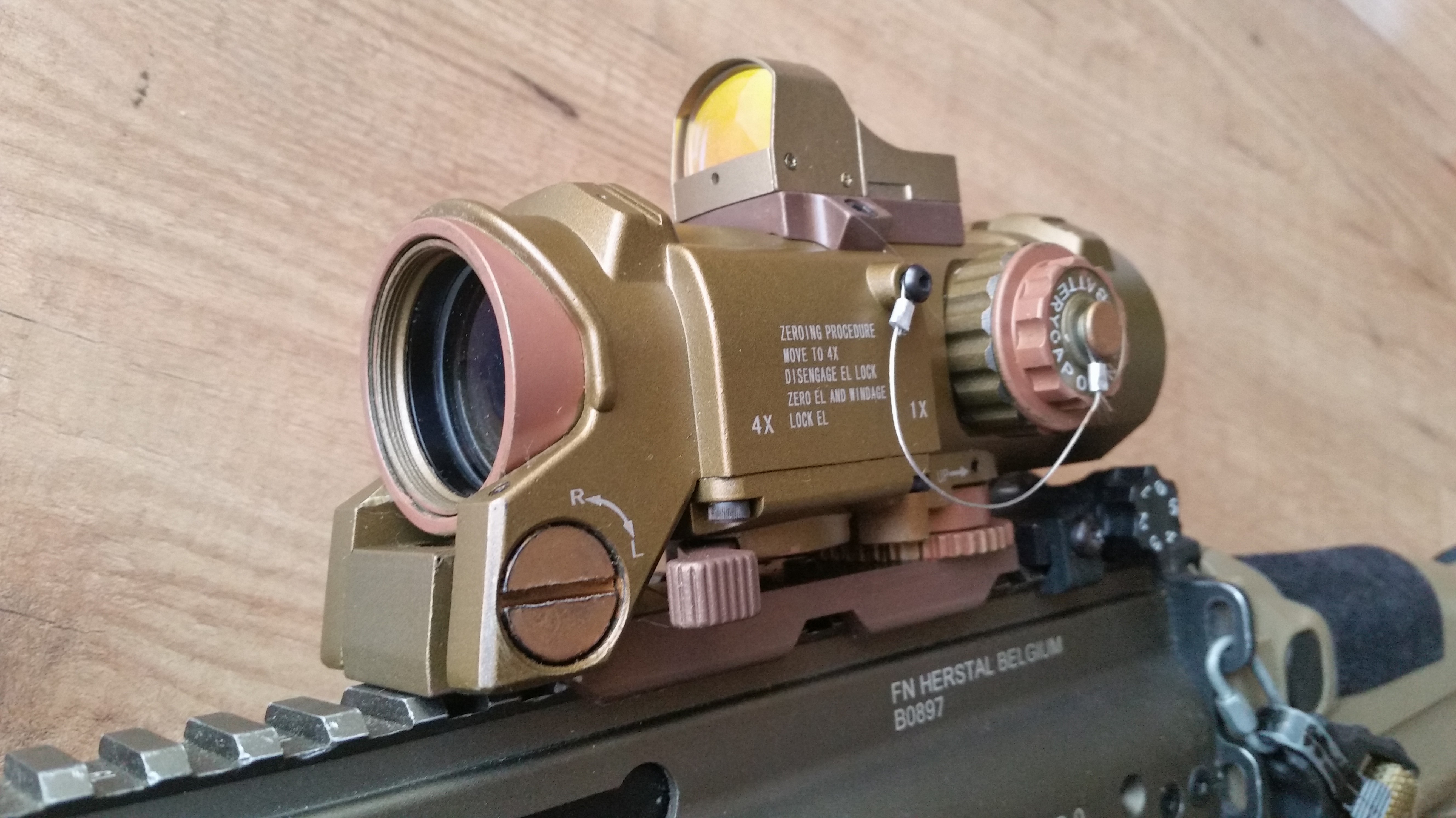 Si tratta di una ottica 4X fissa, senza la possibilità di passare a 1x, con docter dot in aggiunta montato sul dorso.