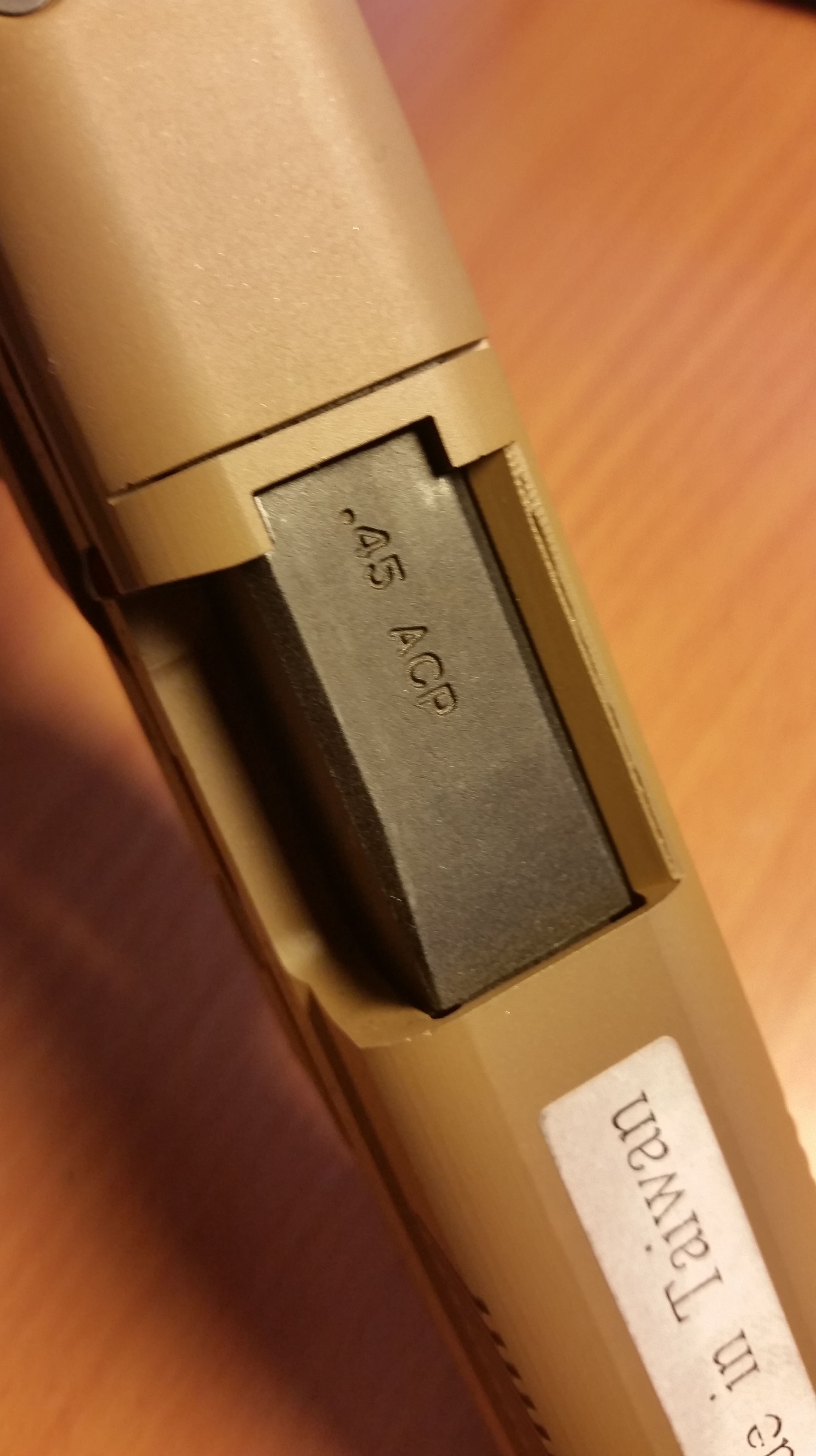 La replica come l’originale è composta di metallo e polimero, entrambi i materiali sono di qualità e impugnandola si ha una sensazione di peso e robustezza ad’eccezzione di un piccolissimo gioco orizzontale del caricatore una volta inserito.