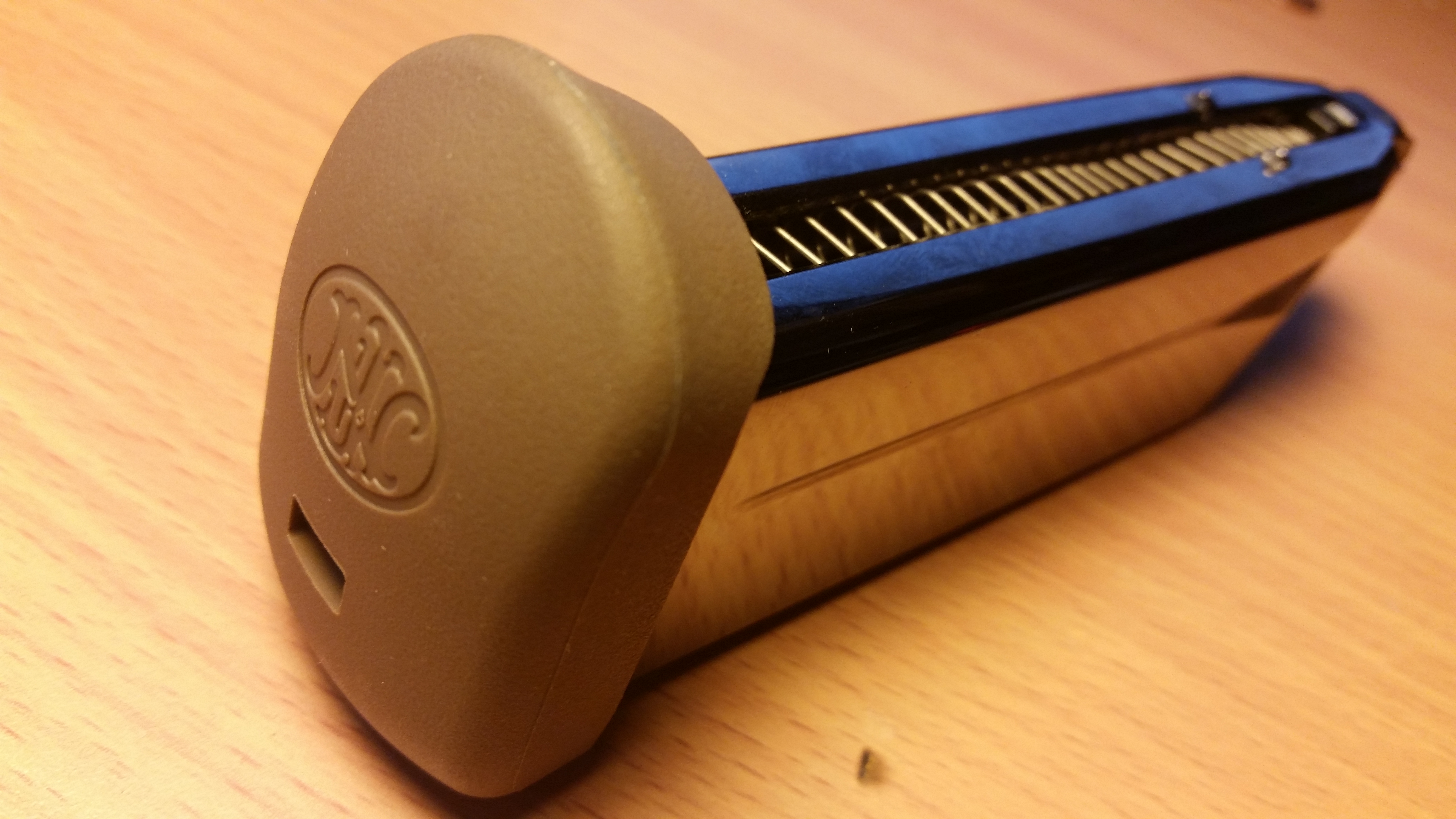 l’impugnatura ha la possibilità di essere adattata alle dimensioni della mano attraverso uno spessoramento posto sul dorso come ormai molte case stanno prevedendo per i loro nuovi modelli.