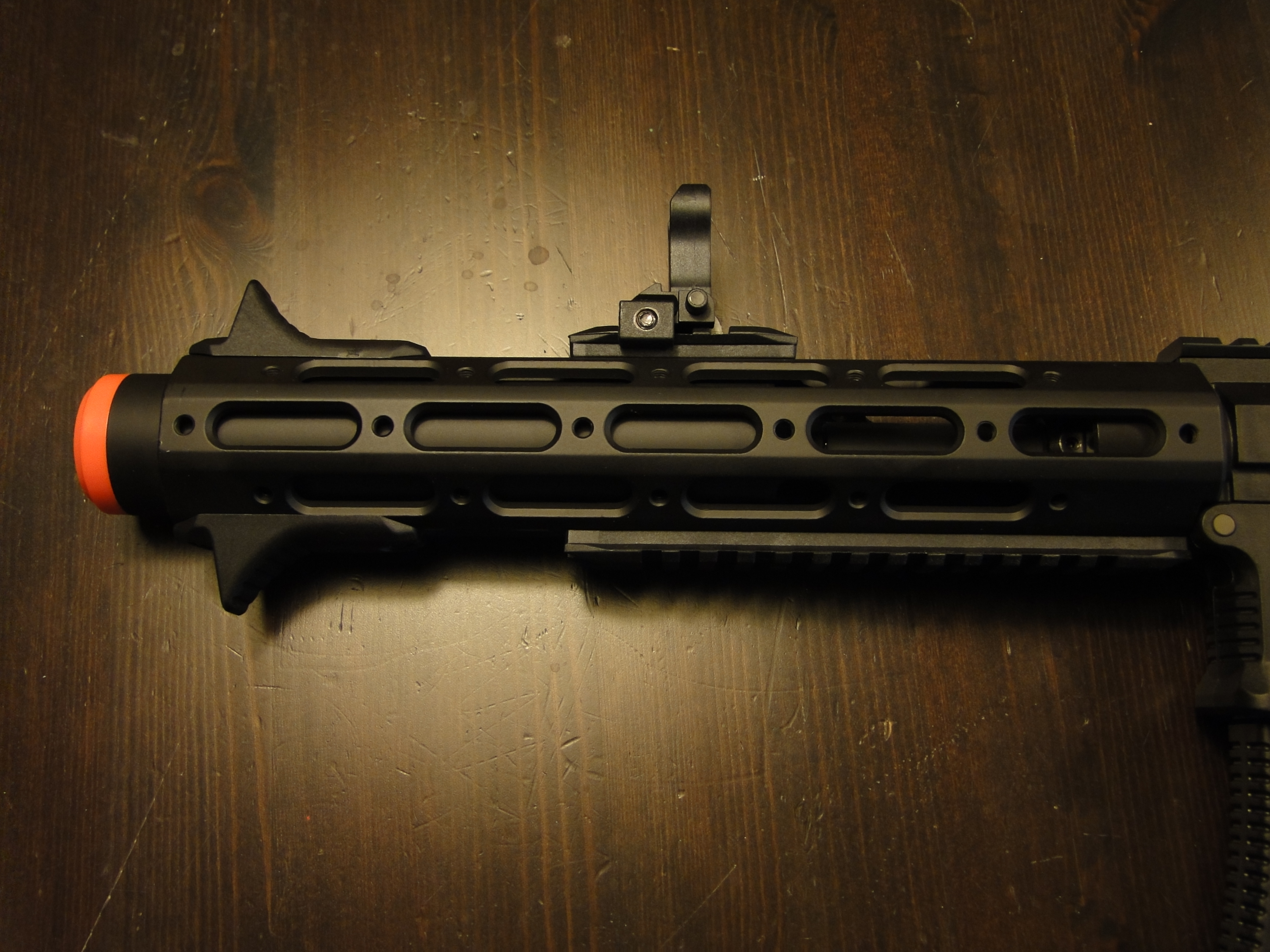 Si tratta di un CQB con silenziatore finto inplementato nel RIS tipo Key mode, che permettono una ampia versatilità di posizioni per posizionare gli accessori.